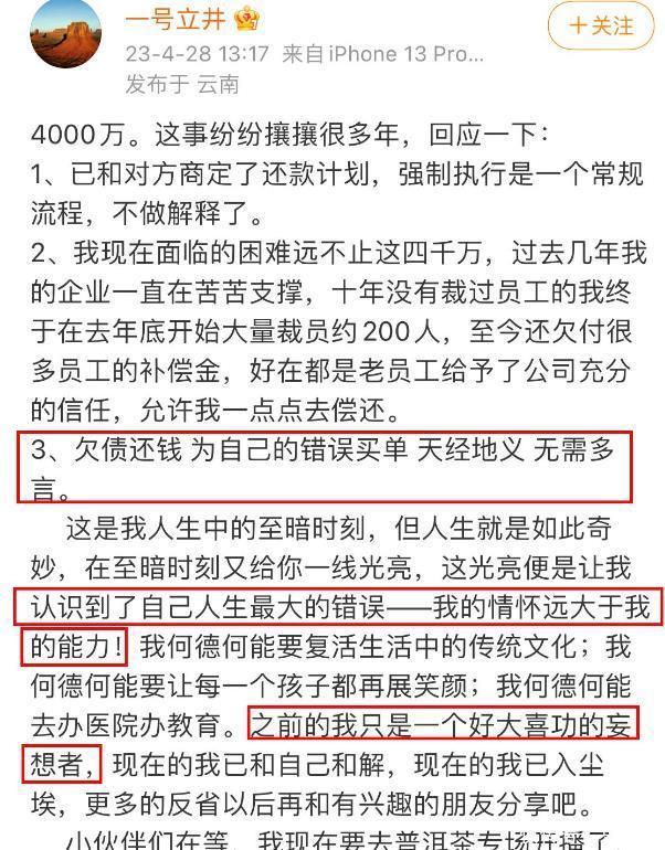 如今,却还是走到了离婚这一步,说起来实在令人唏嘘,不少网友们也纷纷好奇他们离婚背后的真相。 原来,这两年的李亚鹏正因为自己的商业投资,深陷债务困局,他也在自己的社媒上公开透露自己正面临四千万的欠款。